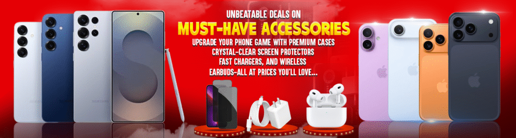 We carry premium cases, screen protectors, chargers, cables, wireless chargers, earbuds, and more — all designed to keep your device protected and stylish.